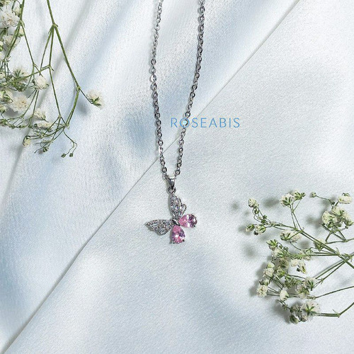 گردنبند جواهری پروانه صورتی پینترستی