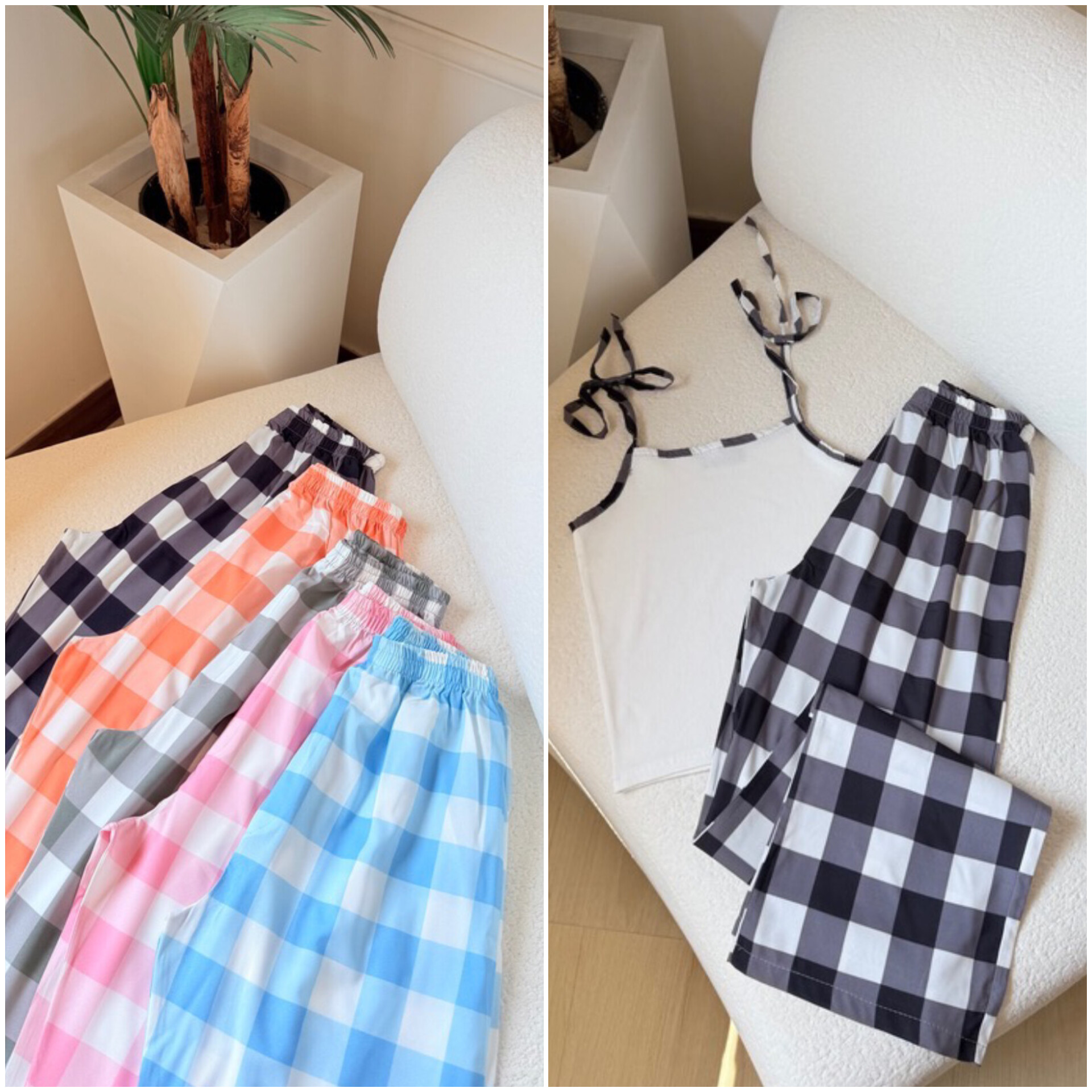ست کراپ و بیژامه چارخونه